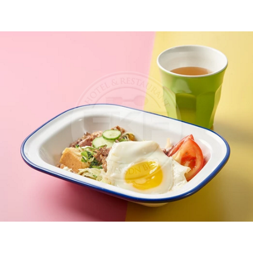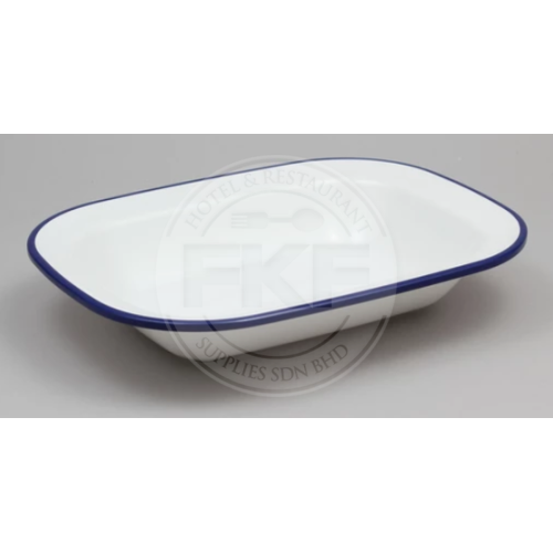 Melamine Enamel Look Rectangular Deep Plate Blue Rim