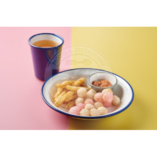 Classic faux enamel look tableware offering hygienic , no breakage and no rust .