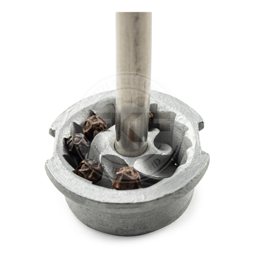 These pepper mills are equipped with an adjustment knob on the head to adjust the grind to suit you.